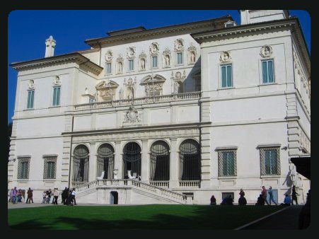 Vi si può accedere da Porta Pinciana o da Via Pinciana, prendendo Viale dei Cavalli Marini e svoltando verso La Galleria Borghese, sita nel palazzo fatto erigere nel 1613 dal cardinale Scipione Borghese. Spicca nella prima sala la statua di Paolina Borghese, sorella di Napoleone, eseguita dal Canova; le altre sale del pianterreno contengono altri grandi capolavori di scultura; il primo piano è dedicato alla pittura e contiene opere di Raffaello, Botticelli, Pinturicchio, Tiziano, Carpaccio, Parmigianino, Antonello da Messina e numerosi altri maestri.